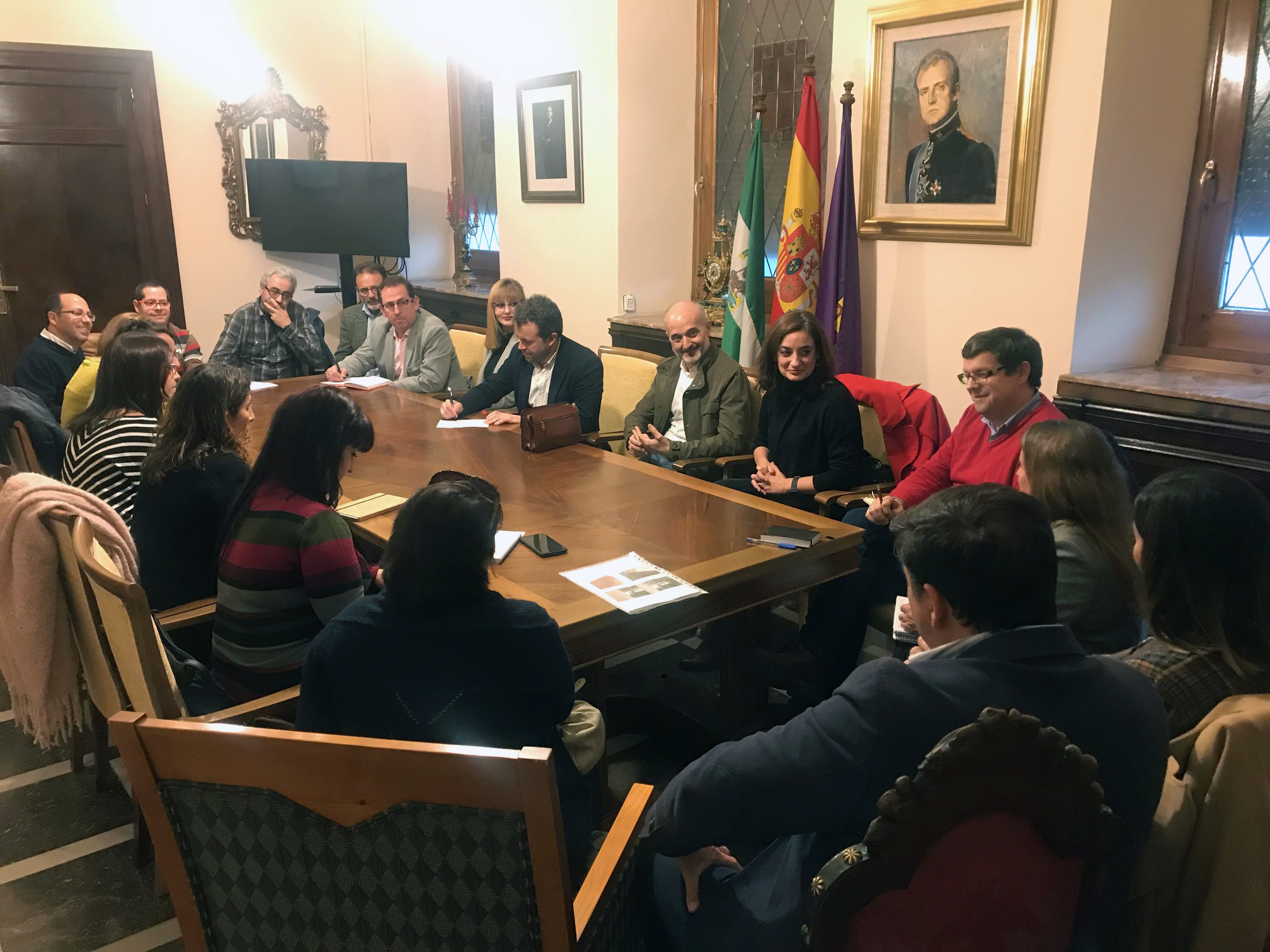 El alcalde de Jaén, Julio Millán, junto a los tenientes de alcalde María Cantos y los concejales Francisco Díaz (Educación), Javier Padorno (Mantenimiento Urbano), Miguel Castro (Tráfico y Policía Local) y Eva Funes (Participación Ciudadana y Juventud) ha mantenido una reunión con padres y madres de la Federación de Asociaciones de Madres y Padres de centros públicos “Los Olivos” en la que sus representantes han trasladado las propuestas y peticiones para intentar mejorar los colegios de la capital y su vida cotidiana. Millán ha reconocido que el trabajo que hay por delante “es intenso y debe ser sostenido en el tiempo. Por eso agradecemos a la Fampa su actitud reivindicativa, que debe servir para que quienes tenemos capacidad de gestión podamos solucionar las demandas de nuestra educación pública, que ha de ser una prioridad”.