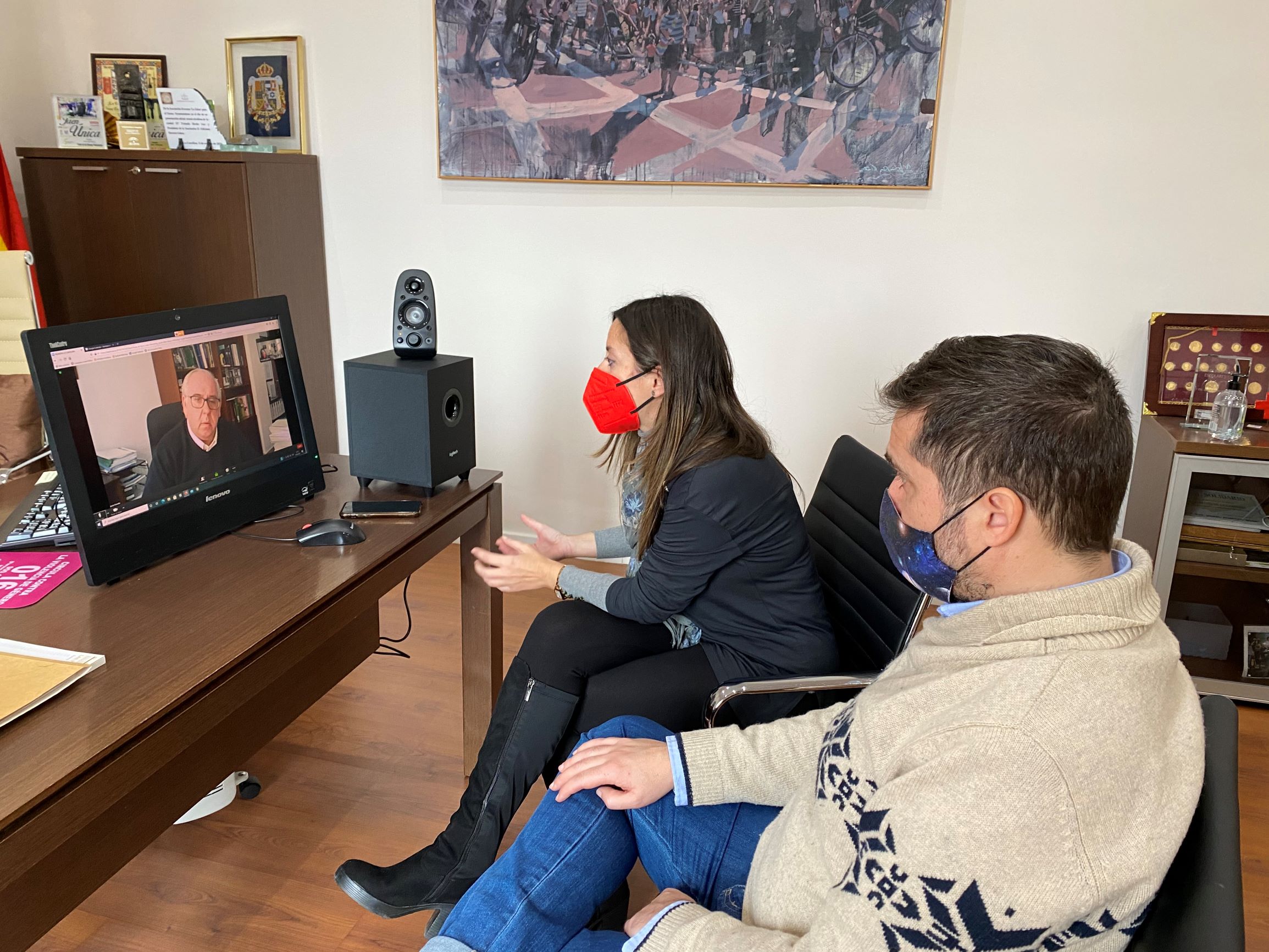 la alcaldesa de La Carolina, Yolanda Reche, y el concejal de Obras y Patrimonio, Marcos Antonio García, han mantenido, finalmente, una reunión con el delegado de Fomento, Infraestructuras y Ordenación del Territorio, Jesús Estrella. El encuentro se ha producido de forma telemática y, en el orden del día, sobre todo, han destacado dos temas: el apeadero de autobuses y el puente peatonal que uniría los núcleos urbanos de Navas de Tolosa y La Carolina”.