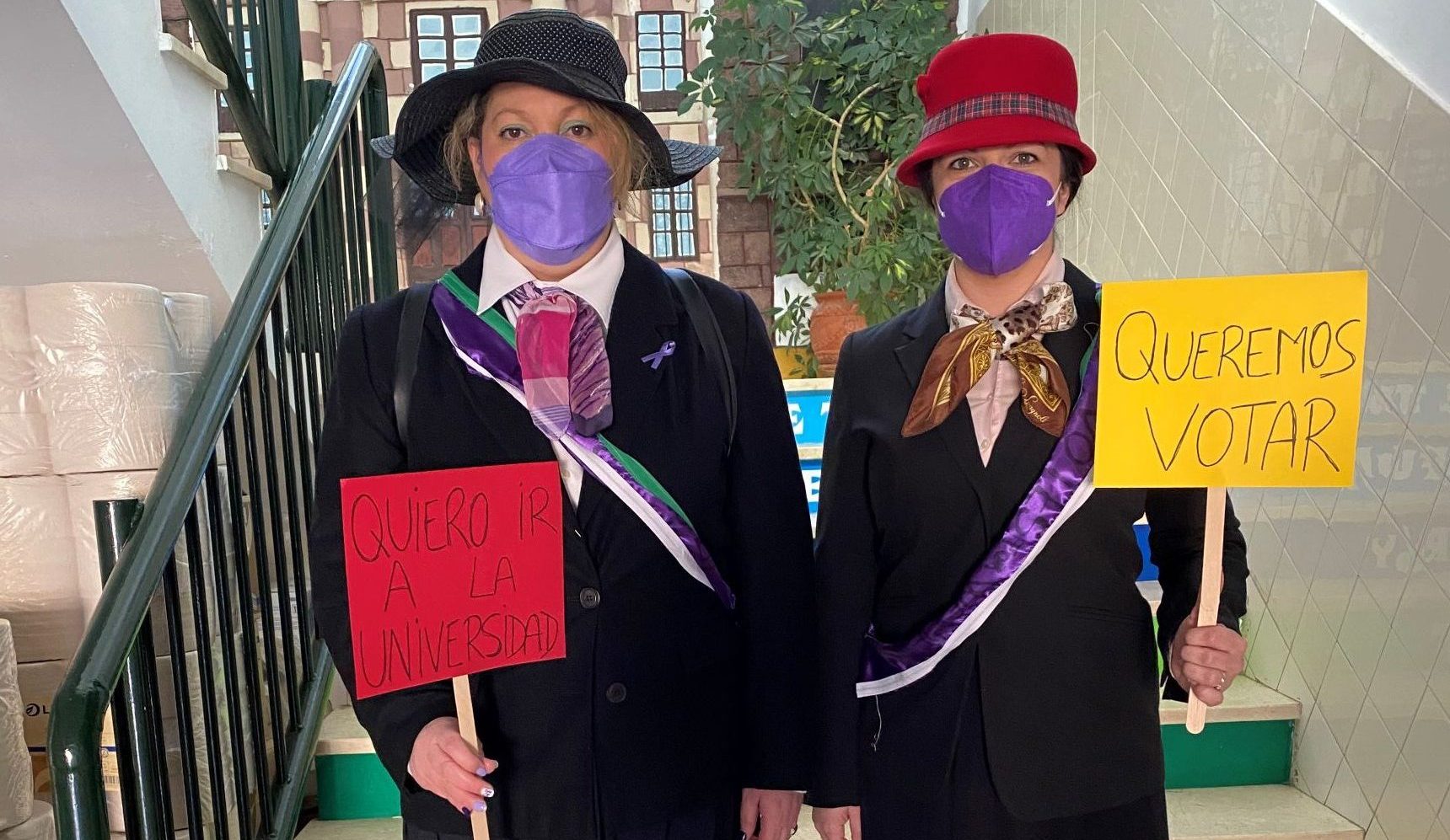 Colegio Carlos III de La Carolina. Dos mujeres irrumpen en una clase de quinto de Primaria. Van ataviadas con una ropa de otra época. Ante la perplejidad del alumnado, se presentaron: “Somos sufragistas”. Así arrancó el taller “Enróllate por la igualdad”, una actividad enmarcada en la programación del Día Internacional de la Mujer dirigida a los cursos de quinto y sexto de Primaria de los colegios del municipio –Carlos III, Palacios Rubio, Manuel Andújar y Navas de Tolosa-.
