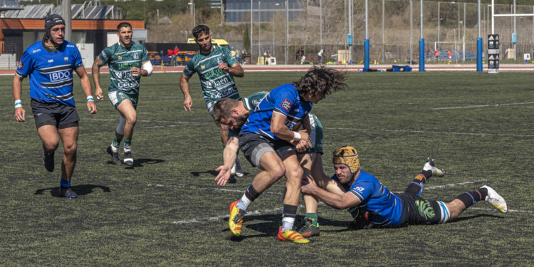 Había entrado poco en juego el equipo local, pero se metieron en el partido gracias a la sucesión de indisciplinas jiennenses que se saldaron con una amarilla para Jaén Rugby. Con uno más, ensayaron por primera vez los locales gracias a un touch-maul a cinco metros de la línea de ensay. Un 7-16 que los catorce jugadores verdeoliva supieron defender con casta hasta que el colegiado, Eduard Martínez, señaló el tiempo de descanso.
