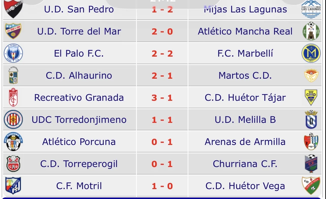 El U.D. Torre del Mar se hizo fuerte en casa con un sólido 2-0 ante el Atlético Mancha Real, demostrando su fiabilidad defensiva y eficacia en ataque. Igualmente, el C.D. Alhaurino sacó adelante un encuentro muy disputado ante el Martos C.D., logrando un 2-1 que le permite sumar tres puntos vitales en su feudo.